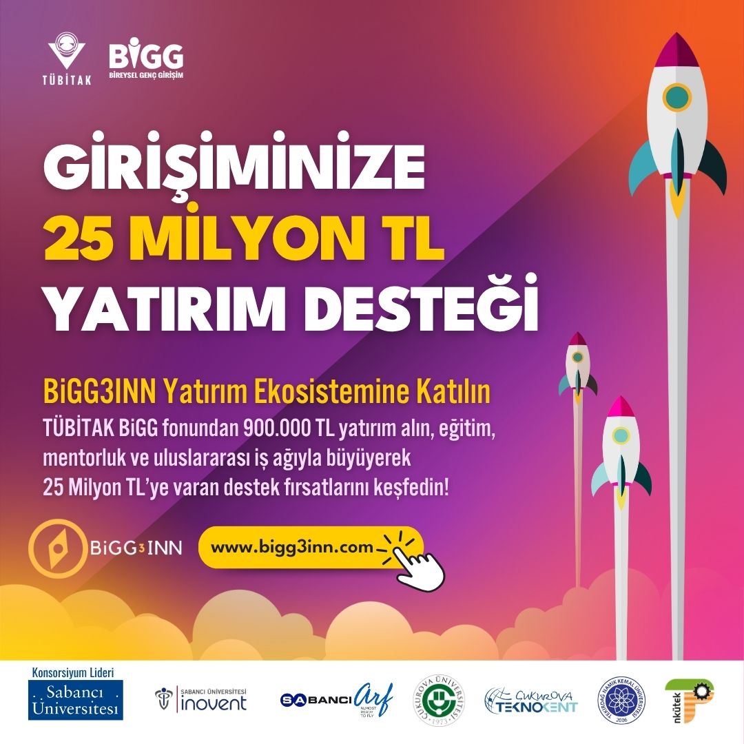 BiGG3INN is a support program that offers technology entrepreneurs an investment support of 900,000 TL during the company establishment process. It is focused on the TÜBİTAK BiGG 1812 - Investment-Based Entrepreneurship Support Program (BiGG Investment), providing entrepreneurs with the training, mentorship, and business network opportunities they may need on the path from idea to product and from product to international market.